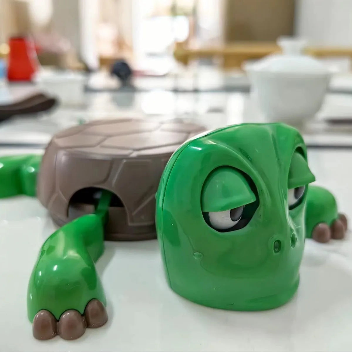 Timmy The Turtle Coaster features a clever mechanical design that springs into action when a drink or any weight is placed on its shell. As the weight is applied, the turtle humorously reacts with a funny gesture, as if it's being gently crushed by the weight. This playful motion adds a unique and entertaining touch to your tabletop while keeping your surfaces safe.